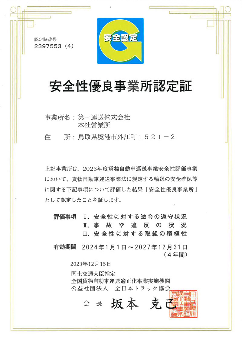 ◯ 国土交通省が推進する「安全性優良事業所」の認定制度です。